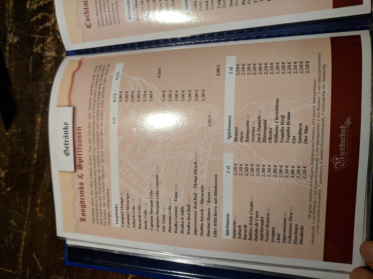 Bundschuh in Bruchsal offers a hearty dive into traditional German cuisine served in a cozy, rustic setting. Known for generous portions and a welcoming atmosphere, the menu highlights classic dishes that pair beautifully with their selection of quality beers and unique cocktails. Guests praise the variety of "Monsters," a lineup of alcoholic drinks bursting with flavor, ranging from the vibrant Red to the refreshing White Monster. The food, described as well-prepared and flavorful, comes with prompt, attentive service that enhances the overall dining experience. Whether you’re craving robust meat dishes or lighter fare, Bundschuh’s menu balances tradition with a touch of creativity, making each meal memorable. The warm ambiance, complemented by friendly staff and occasional live music, invites diners to relax and savor every bite. For those seeking authentic German flavors in an inviting environment, Bundschuh stands out as a must-visit culinary destination.